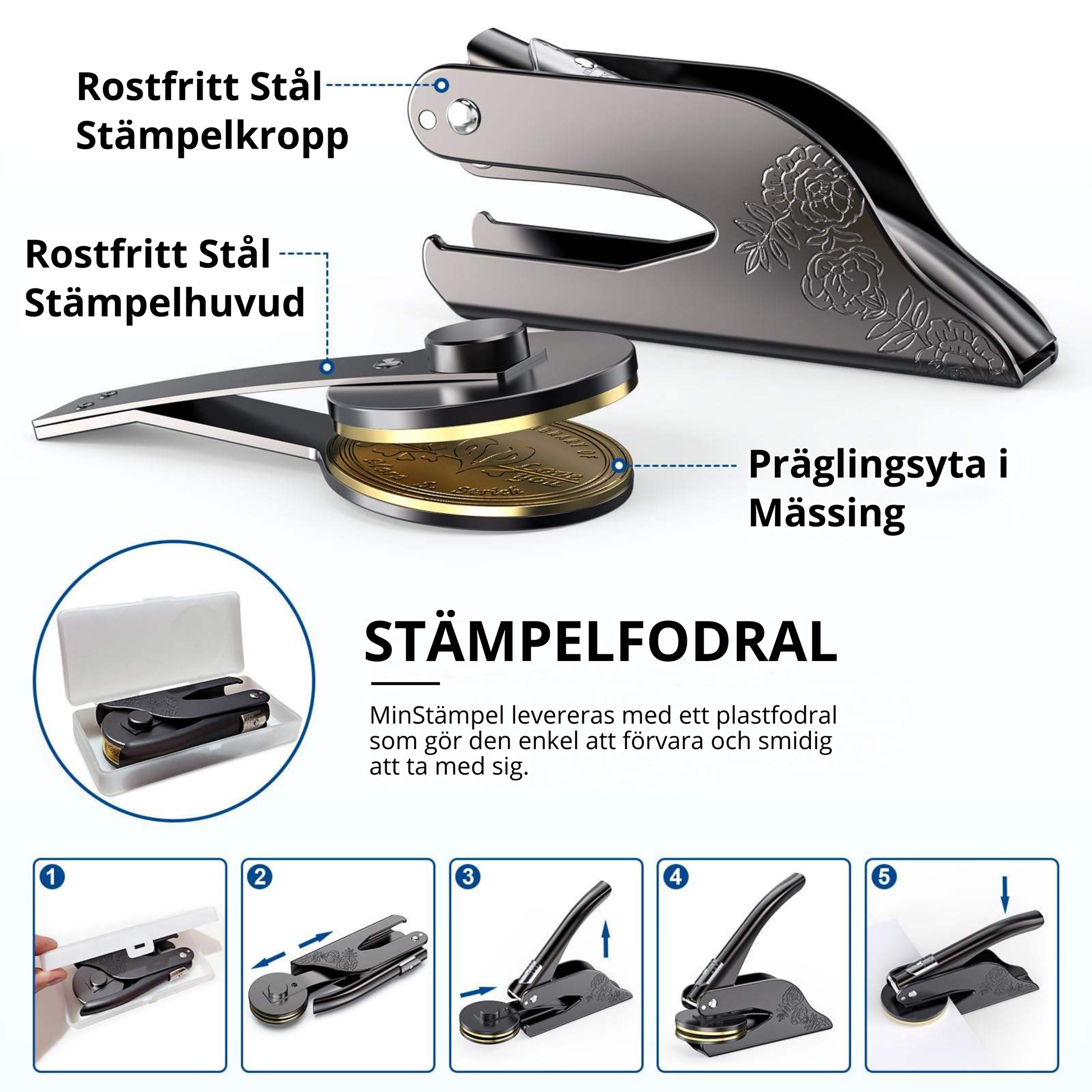 Att skriva ditt namn med penna kan blekna över tid och riskerar att smeta ut eller skada sidan. En embosser ger en permanent, bläckfri märkning som är både diskret och elegant, vilket höjer bokens estetiska och känslomässiga värde.